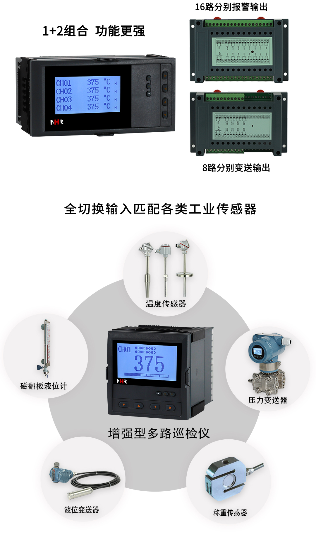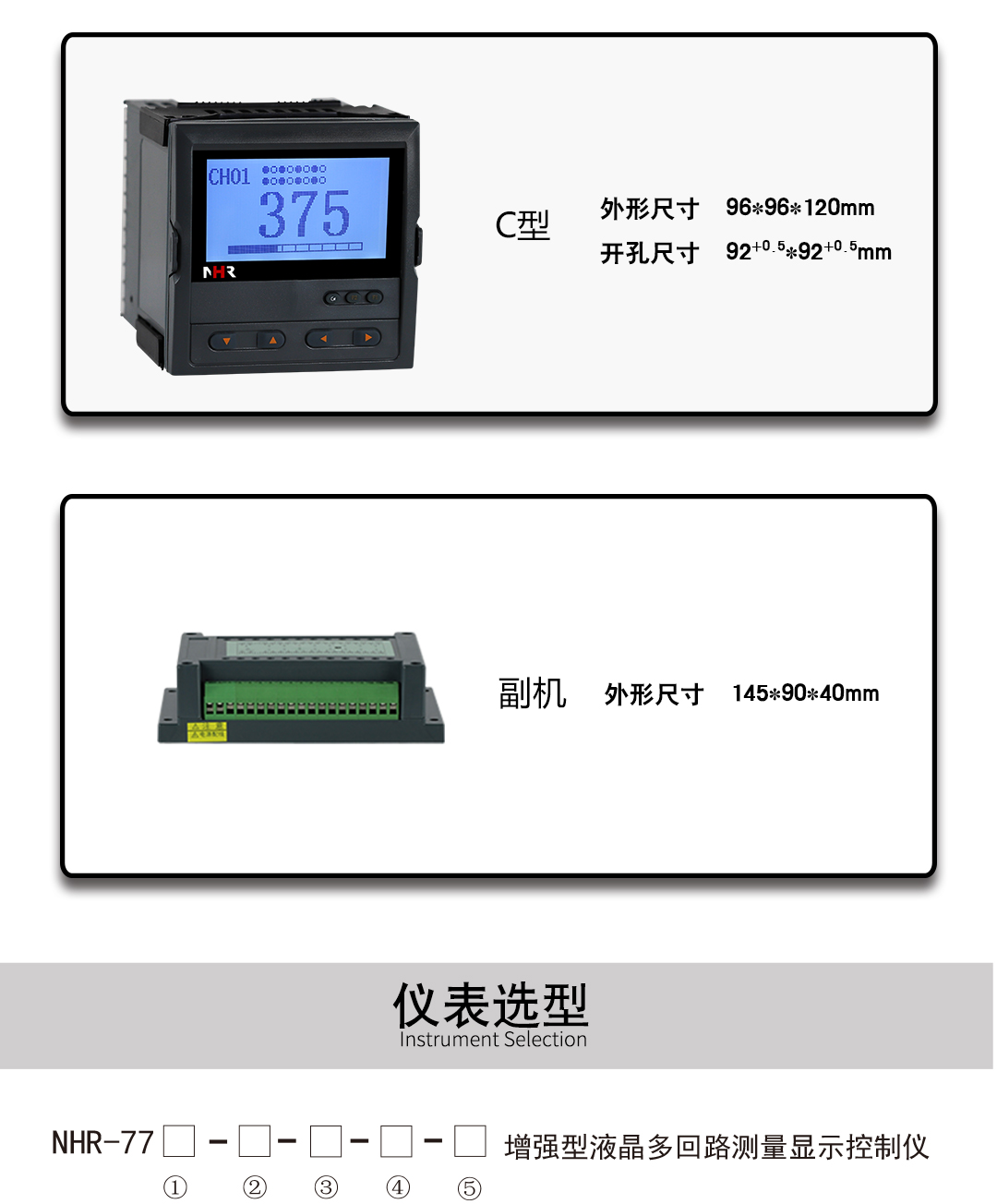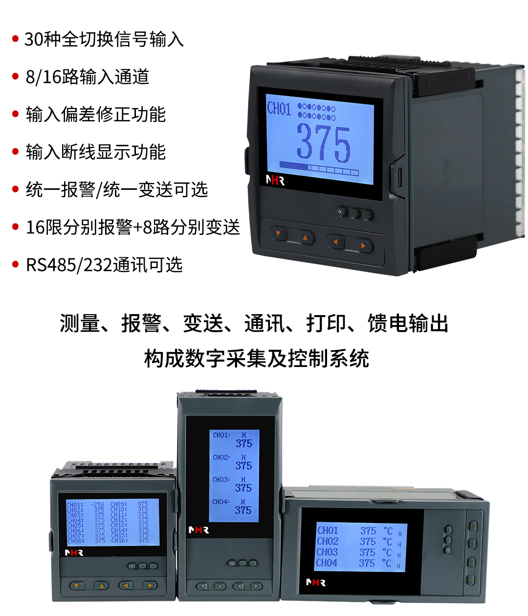 NHR-7702系列增强型液晶多回路测量显示控制仪针对现场温度、压力、液位、速度等各种信号进行采集、显示、控制、远传、通讯、打印等处理