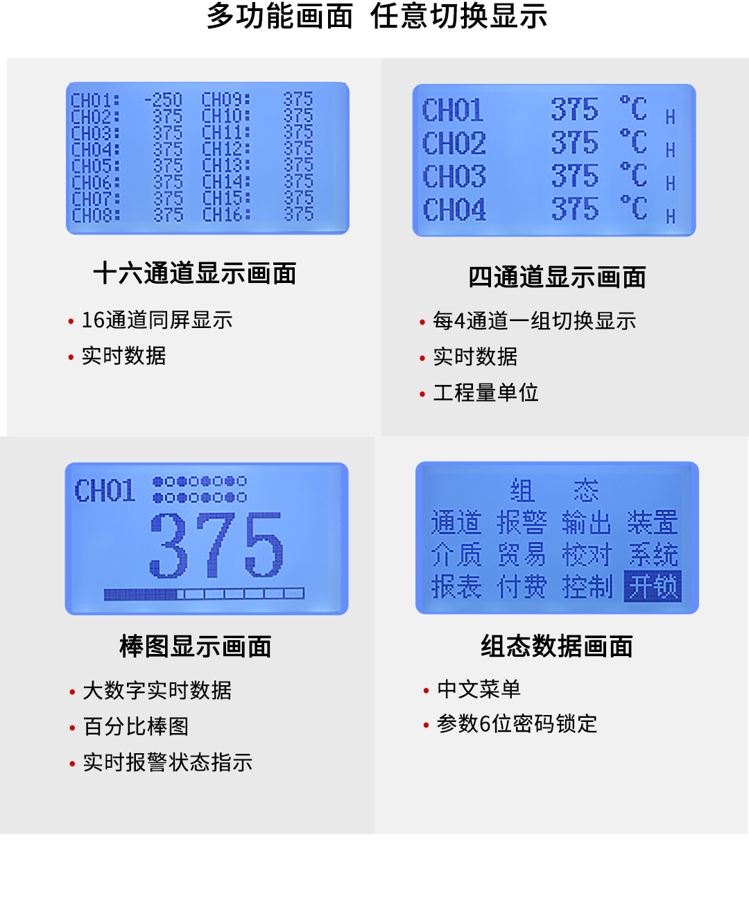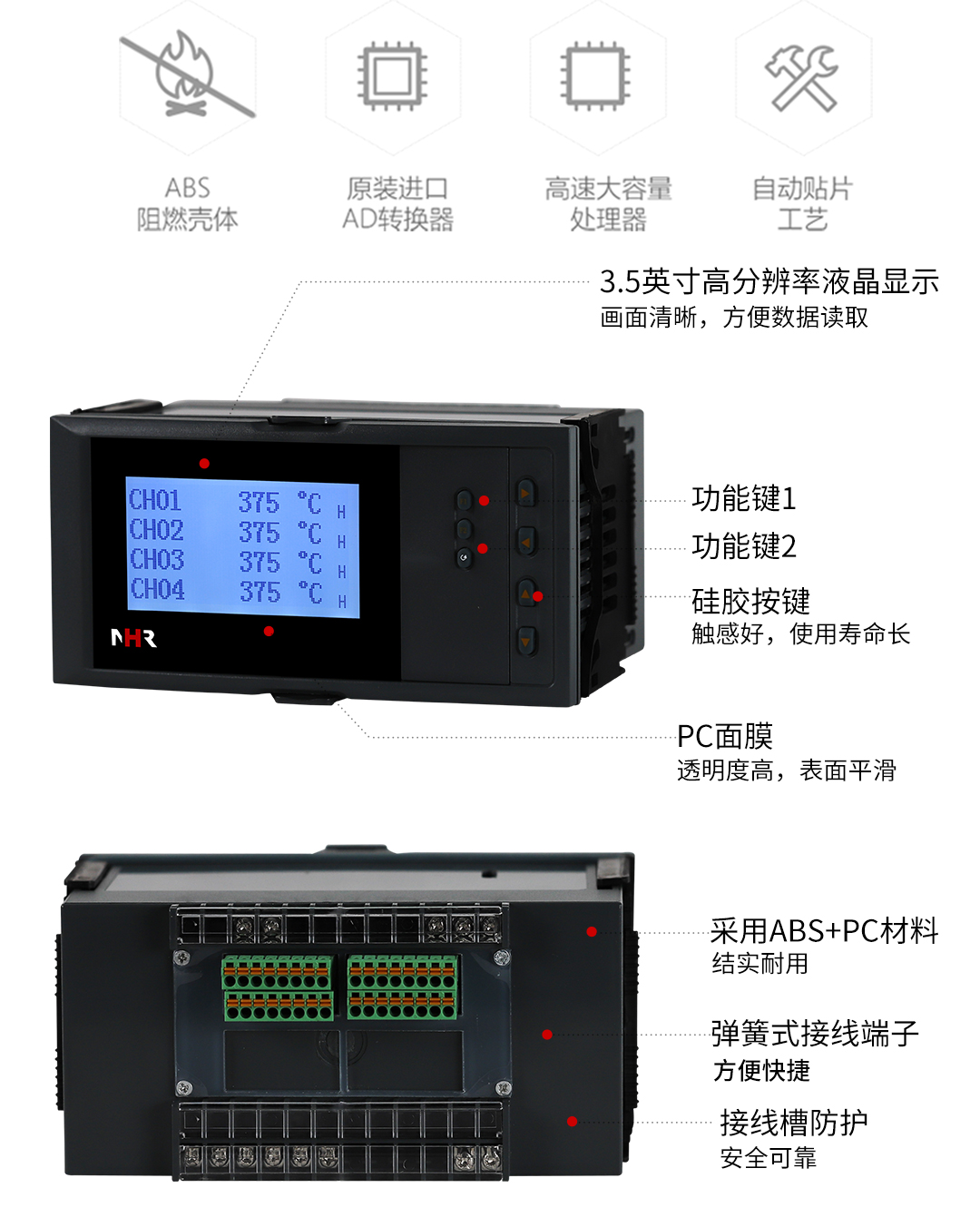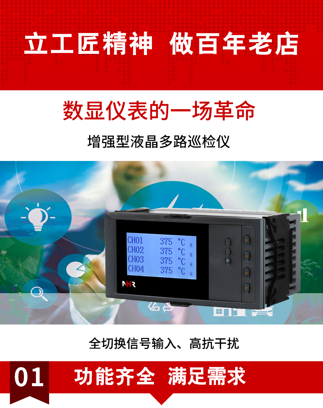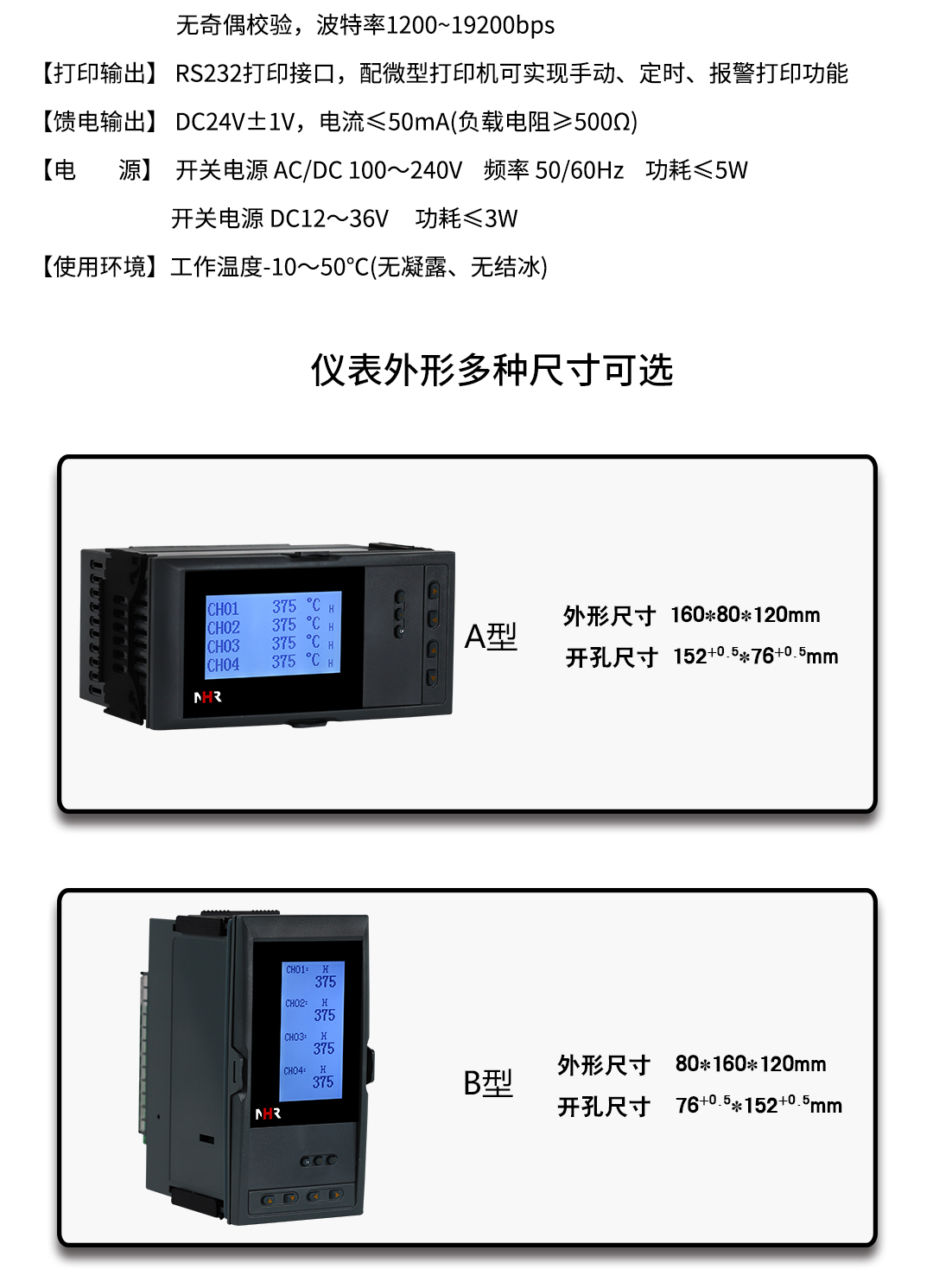NHR-7702系列增强型液晶多回路测量显示控制仪针对现场温度、压力、液位、速度等各种信号进行采集、显示、控制、远传、通讯、打印等处理